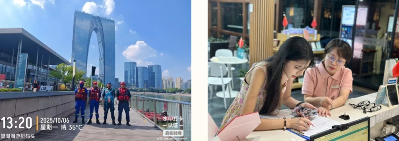 雙節(jié)假期,金雞湖景區(qū)游客中心和碼頭增加了“小水滴志愿者”,為市民游客提供引導(dǎo)和幫助。景區(qū)管理中心聯(lián)合屬地企業(yè)、景區(qū)執(zhí)法部門、應(yīng)急救援等22家單位,強(qiáng)化值班值守制度,及時處理各類涉旅問題,不斷提升游客體驗感、滿意度。環(huán)湖各碼頭、文化場所、游客中心、驛站、摩天輪等相關(guān)載體工作人員堅守一線窗口,以微笑服務(wù)迎接每一位市民游客。藍(lán)天救援隊每日水上巡防、各屬地一線安保人員齊齊在崗,為市民游客中心營造了安心、舒心的假日環(huán)境。