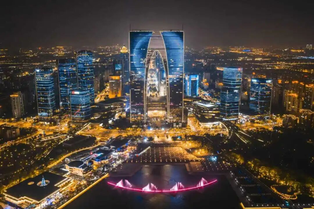 光影盛宴,同慶華誕。圍繞中秋和國慶主題,融入“數(shù)字孿生”等先進(jìn)技術(shù),金雞湖音樂噴泉和環(huán)湖樓宇帶來了特別的燈光秀。東方之門特別呈現(xiàn)“繡姑蘇、共此時、躍龍門”三大篇章的燈光秀,以天為幕、以光為筆,繪就波瀾壯闊的時代畫卷,將節(jié)日氛圍推向了高潮。
