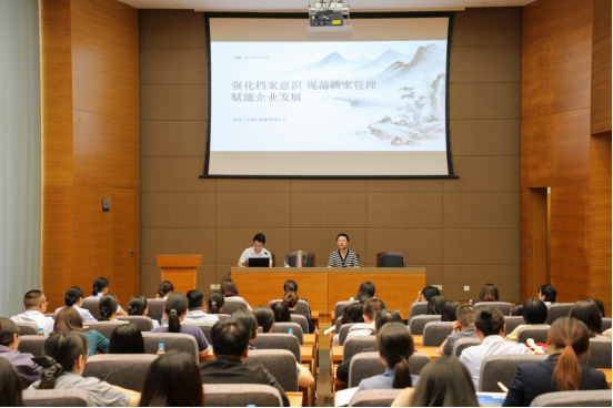培訓中,檔案管理中心還向參訓人員發放了中心最新編纂的《檔案工作文件匯編》,并對檔案職稱評審、檔案學會工作等做了簡要介紹。