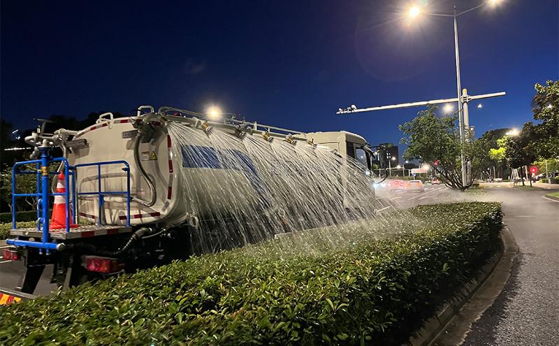 面對高溫干旱,傳統(tǒng)澆水方式疲于應(yīng)對大規(guī)模綠化養(yǎng)護(hù)的需求。為此,園區(qū)市政服務(wù)集團(tuán)指導(dǎo)生產(chǎn)企業(yè),共同研發(fā)新型智能水車,其獨(dú)特設(shè)計(jì)的多向可調(diào)噴頭及前后水炮,通過駕駛室智能控制系統(tǒng)實(shí)現(xiàn)精準(zhǔn)灌溉,既節(jié)省了人力成本,又大幅提升了澆水質(zhì)量與效率。這一創(chuàng)新技術(shù)的應(yīng)用,為園區(qū)綠化帶來了及時(shí)而充足的“甘霖”,確保了每一株植物都能得到充分的滋養(yǎng)。