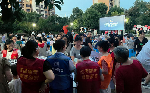 “主題夜攤”“夏夜影院”“書香夜讀”“防非反詐”……入夏以來,文薈苑社區黨總支依托新時代文明實踐矩陣,立足群眾所需,創新服務方式,將文明實踐“點亮星夜送清涼”活動送到群眾“家門口”。依托街道文體配送項目,文薈苑社區黨總支組織轄區居民在法治廣場觀看夜電影。觀影開始前,社區紅色管家志愿者早早地將觀影設備搭建好,并為觀影的居民們免費分發綠豆湯和酸梅湯。觀影中,跌宕起伏的劇情深深打動了在場的每一位觀影者。放映結束后,居民李阿姨感嘆:“露天放映電影的形式,把大家聚在一起,讓我想起了兒時的幸福時光,這樣接地氣、有朝氣的文化活動,是我們居民夢寐以求的文明和諧、歡樂喜慶的夜生活。”