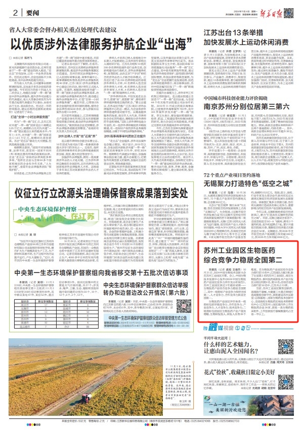 當(dāng)前,蘇州工業(yè)園區(qū)聚焦創(chuàng)新藥、高端醫(yī)療器械、大健康三大重點(diǎn)領(lǐng)域打造高能級(jí)創(chuàng)新平臺(tái),獲批建設(shè)蘇州實(shí)驗(yàn)室(總部基地)、國(guó)家生物藥技術(shù)創(chuàng)新中心、全國(guó)高校生物醫(yī)藥區(qū)域技術(shù)轉(zhuǎn)移轉(zhuǎn)化中心(江蘇蘇州);園區(qū)境內(nèi)外上市生物醫(yī)藥企業(yè)24家,獲批一類(lèi)生物藥臨床批件、上市創(chuàng)新醫(yī)療器械數(shù)量均占全省一半以上。