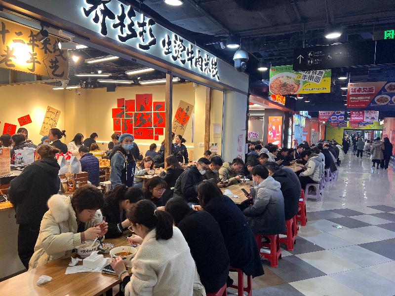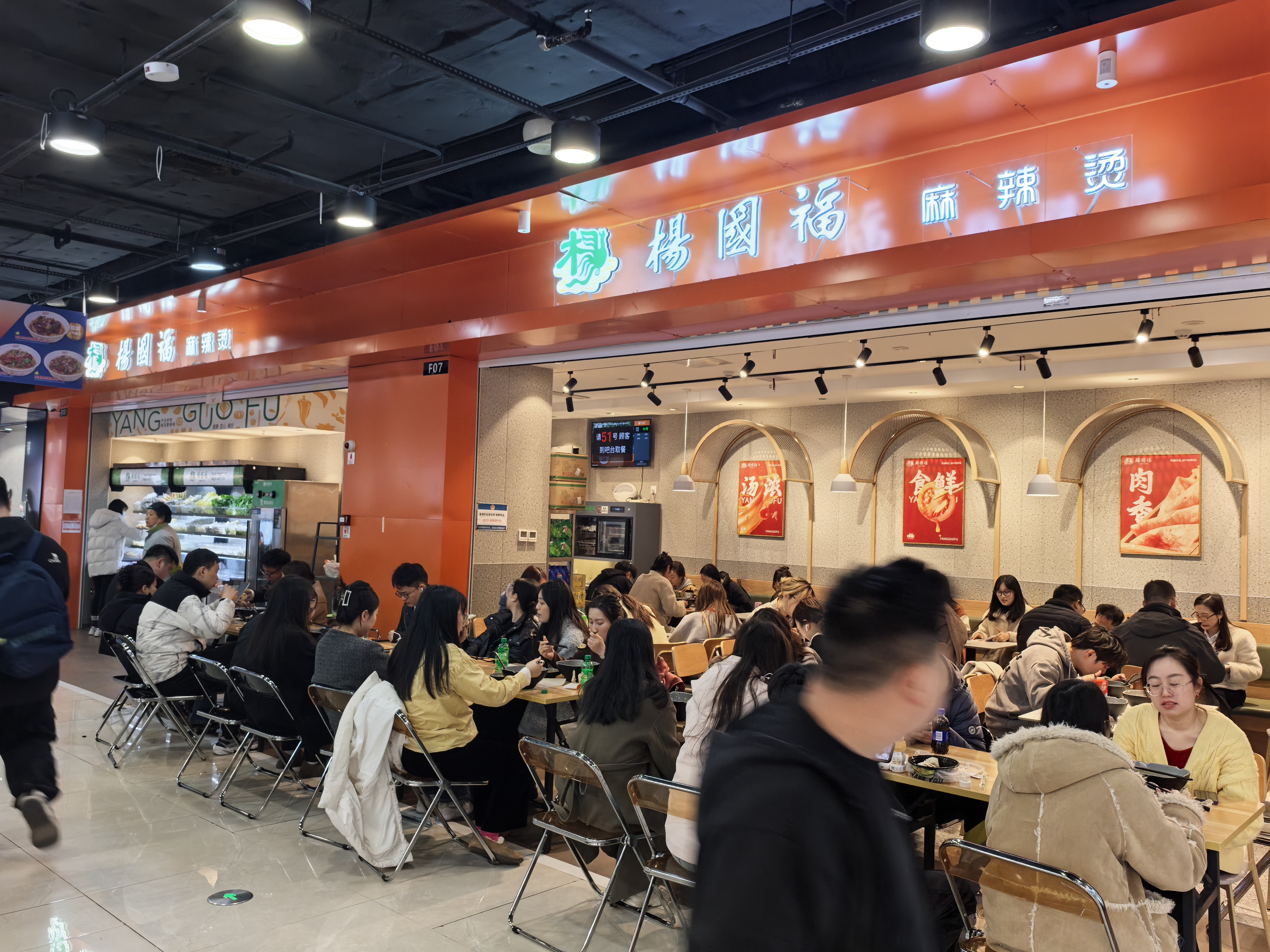 站前町相關負責人透露,為了滿足周圍客群的口味需求,他們專門做了市場調查問卷。現在的主力品牌,像米村拌飯、伊客來麻辣香鍋、稻狀元、擂飯、一米廚、喬杉杉生燙牛肉米線、渝八量重慶雞公煲、楊國福麻辣燙等,都是附近打工人的心頭好。