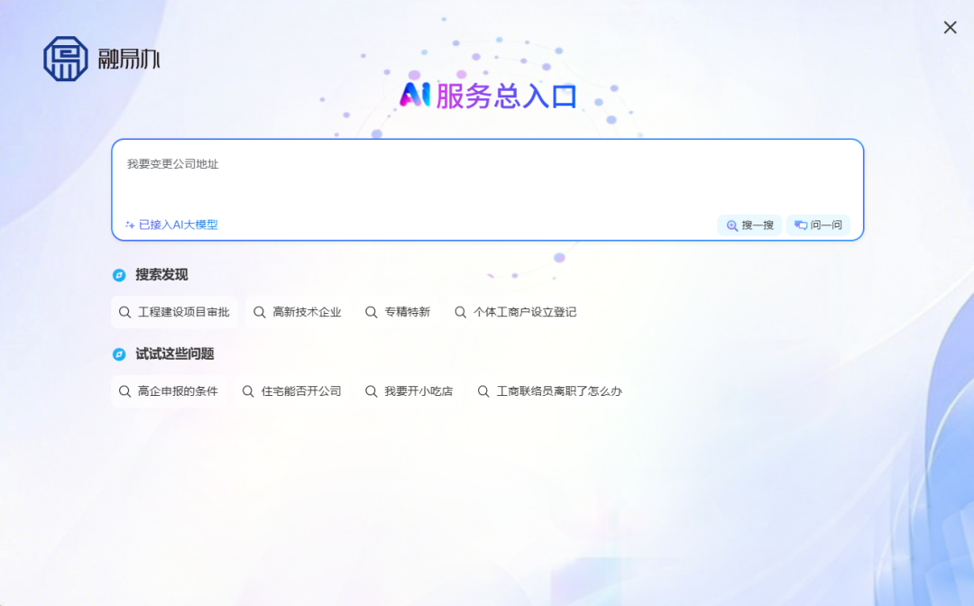 為提升企業(yè)使用體驗(yàn)感,“園區(qū)法人服務(wù)總?cè)肟凇狈e極擁抱AI+浪潮,深度鏈接DeepSeek大模型,全國首創(chuàng)“AI服務(wù)總?cè)肟凇保Y(jié)各部門精心打造的AI“人才助手”“高企助手”“企業(yè)開辦助手”等智能體矩陣,每個領(lǐng)域都有高級AI專家出謀劃策;打通了智能客服與AI搜索能力,打造了“搜”“問”“辦”全鏈深度融合的智能服務(wù)新模式,無需記住專業(yè)術(shù)語,企業(yè)只需像朋友對話一樣描述需求,平臺就能迅速解析場景,精準(zhǔn)推薦服務(wù)方案。