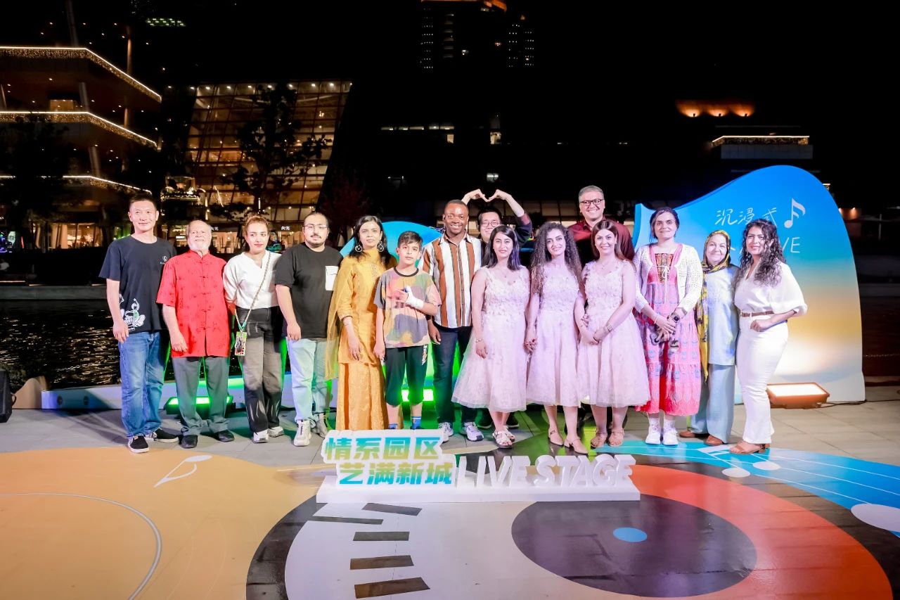 在圓融天幕街,每周上演的“藝術(shù)盲盒”演出正重新定義公共空間屬性。2025年煥新升級的“YI說園區(qū)”Live Stage,通過三維沉浸式藝術(shù)現(xiàn)場打破觀演邊界,百米天幕與電子音浪交織,爵士樂與暮色共舞,吸引數(shù)千市民共享藝術(shù)之夜?;顒觿?chuàng)新設(shè)立的“煙火民星”計劃,讓科研人員、醫(yī)護工作者等普通市民成為舞臺主角。在五月的“情系園區(qū) 藝滿新城”活動中,在蘇外籍友人與本地藝術(shù)愛好者的跨文化演繹,更彰顯園區(qū)“國際范”與“江南韻”的共生魅力。