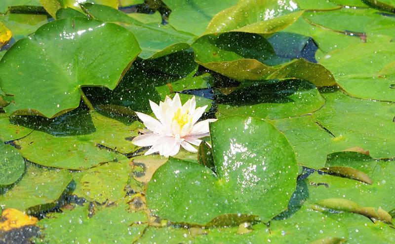 睡蓮綻放的背后,離不開園區對生態環境的精心呵護與不懈努力。近日,環金雞湖步道凈水系統投入使用,成為守護這片水域的“生態衛士”。一排噴頭持續向湖面噴射清水,帶動湖水加速流動。據工作人員介紹,該系統通過促進水體循環,可有效抑制藍藻滋生,為水生生物營造優良棲息環境,讓湖水始終保持澄澈明凈。飛濺的水珠在陽光下折射出晶瑩光芒,氤氳水霧縈繞睡蓮四周,更添幾分仙氣,也讓這片水域煥發出勃勃生機。
