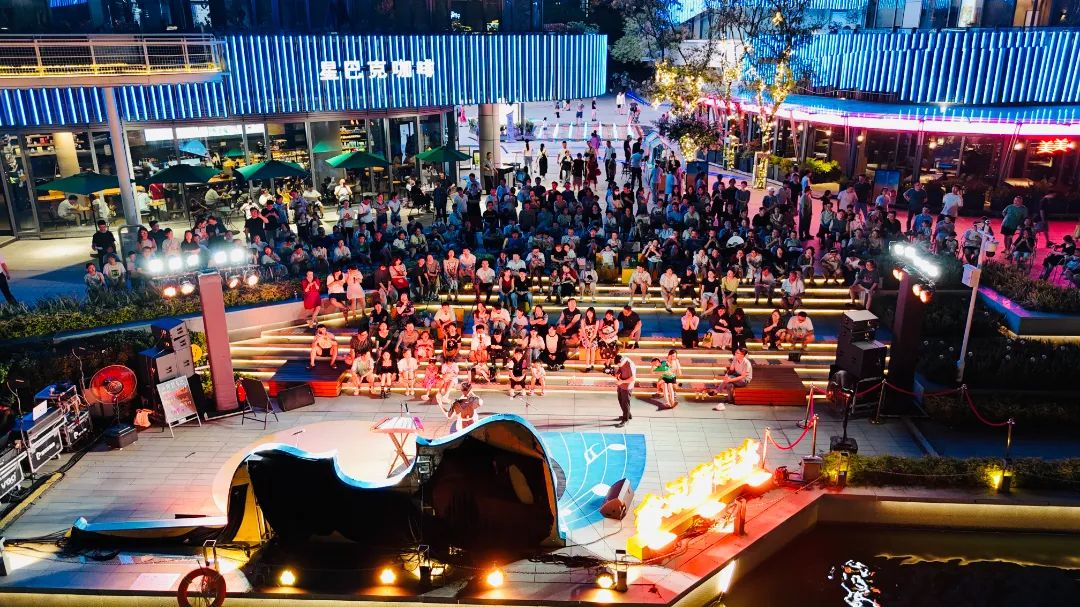 昨晚,水岸音樂會同樣在圓融時代廣場精彩上演。南京藝術(shù)學院歌手與蘇州市歌舞劇院樂手聯(lián)袂獻藝,帶來《海芋戀》《月亮代表我的心》等流行與民樂跨界曲目。觀眾席中掌聲與合唱聲此起彼伏,熒光點點隨節(jié)奏搖曳,夜色中的水岸洋溢著浪漫與活力。