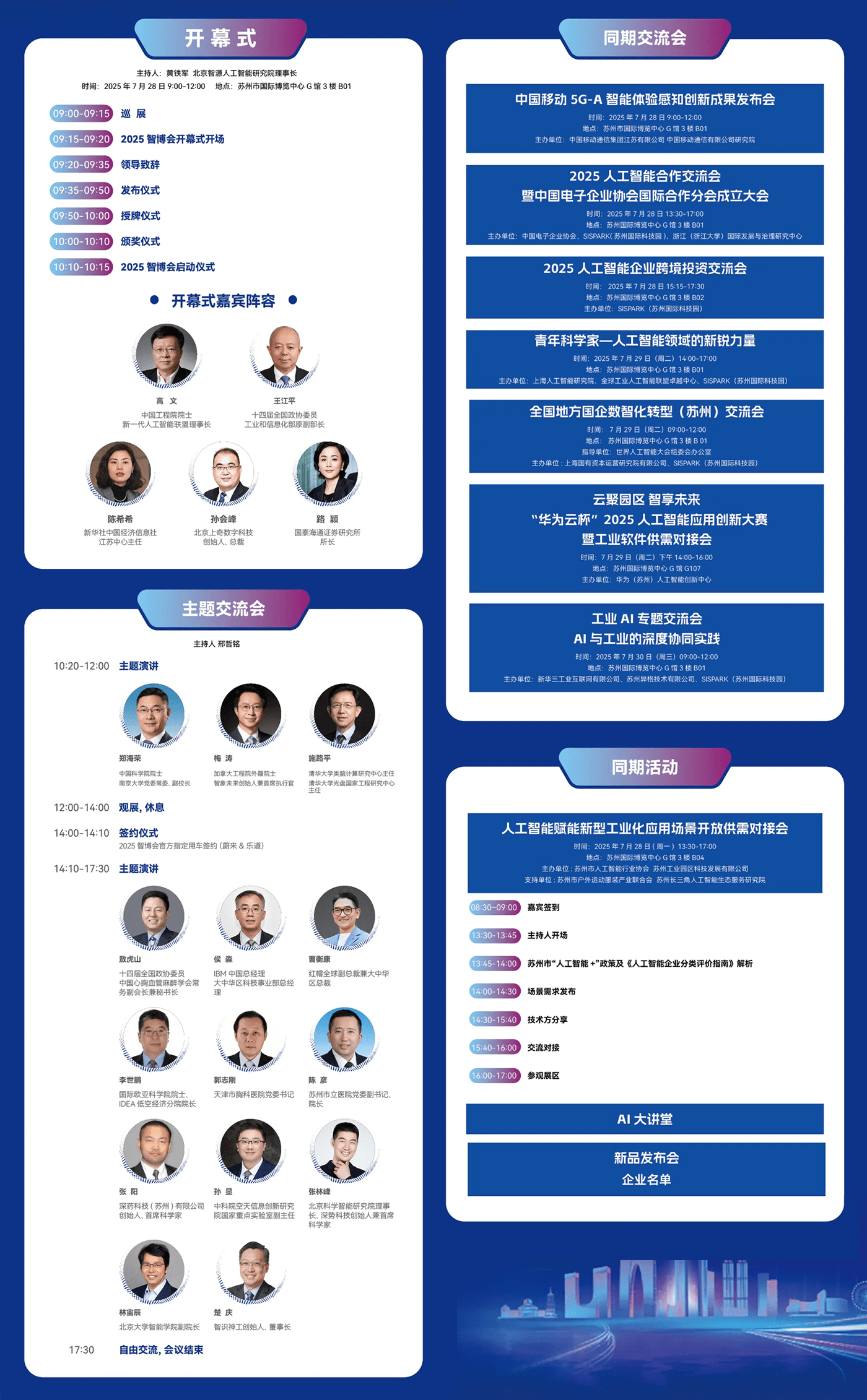 7月28日,2025人工智能產品應用博覽會在蘇州工業園區開幕,在炎炎夏日里開啟一段未來感十足的科技之旅。作為中國經濟發展最活躍、開放程度最高、創新能力最強的區域之一,園區在人工智能領域前瞻布局,以政策引領、服務賦能、場景創新等多元發力,構建起產業發展的全鏈支撐,著力描繪創新之城的未來圖景。頂層架構 前瞻布局 人工智能產業加速生長2017年,國家出臺《新一代人工智能發展規劃》,人工智能正式上升為國家戰略。園區同年印發《蘇州工業園區人工智能發展行動計劃(2017-2020)》和《加快人工智能產業發展的若干意見》,成為國內首個明確提出聚焦人工智能及數字產業,并制定系統產業規劃的國家級高新區。為... [詳細]