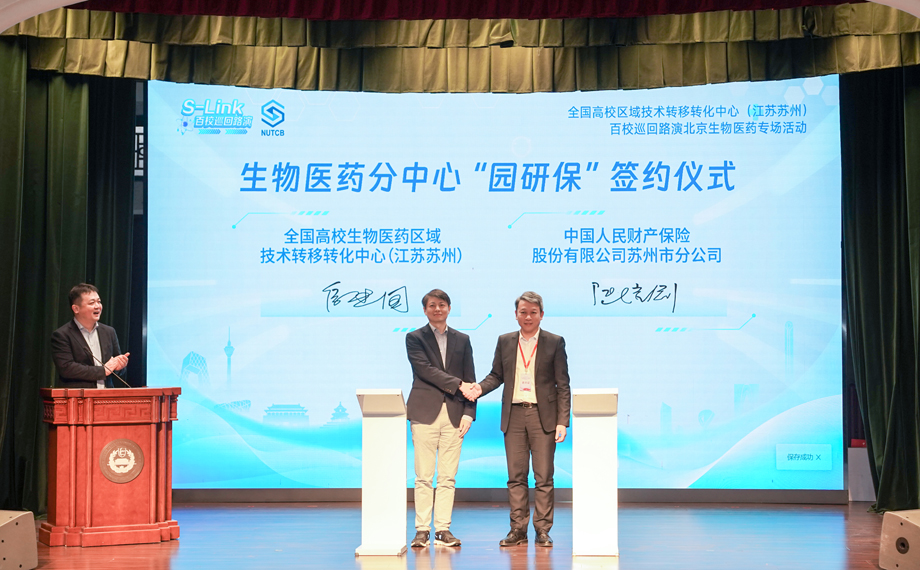 “園研保”簽約:生物醫藥分中心與人保財險蘇州市分公司達成戰略合作,共同推出全國首個針對高校科研成果轉化的專屬保險產品——“園研保”。該保險首創包括科技成果轉化費用損失保險、專利被侵權損失保險、專利執行保險、專利許可信用保險、侵犯專利權責任保險在內的四重綜合保險模式,為高校科技成果轉化項目提供全過程風險保障。首單承保了蘇州緣聚醫藥科技有限公司與南京醫科大學和蘇州南醫大創新中心的科技成果轉化項目。