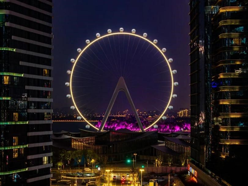 傍晚時分,金雞湖迎來一天中最美的時刻。“蘇州之眼”摩天輪的黃昏場格外浪漫,夕陽為太空艙鍍上金邊,湖面倒映著橙紅色霞光。不遠處的蘇州文化藝術(shù)中心、688藝術(shù)潮流空間匯聚了各類藝術(shù)展覽與潮流活動,在這里能深刻感受園區(qū)的藝術(shù)脈搏。當夜幕降臨,月光碼頭燈火璀璨,湖邊酒吧傳來輕柔音樂,是漫步賞景的理想去處。環(huán)金雞湖周邊不同風格的酒店則提供了多元住宿選擇,既能享受便捷交通,更能近距離領(lǐng)略金雞湖的迷人夜色。