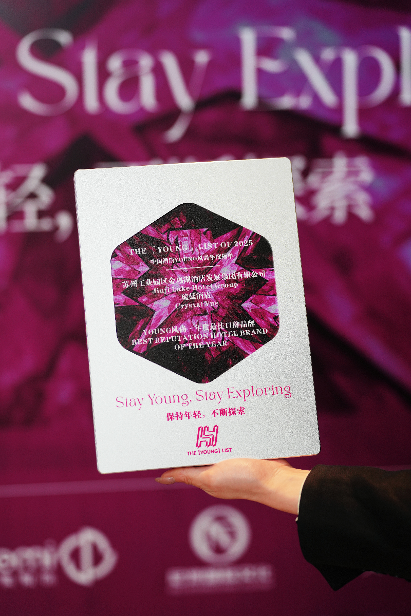 在當晚舉行的“2025中國酒店YOUNG風尚年度榜頒獎典禮及年度晚宴”上,各大獎項逐一揭曉?!傲鹜ⅰ睆谋姸嗥放浦忻摲f而出,以自然為畫卷,以文化為底色,“隨心所向,自在旅居”的生活意境,將蘇州文化內核與現代社交需求相結合的理念,打造的美學空間與貼心服務,精準契合了當代年輕客戶對文化內涵與舒適化體驗的雙重追求,從而贏得了市場與評委的廣泛口碑認可。