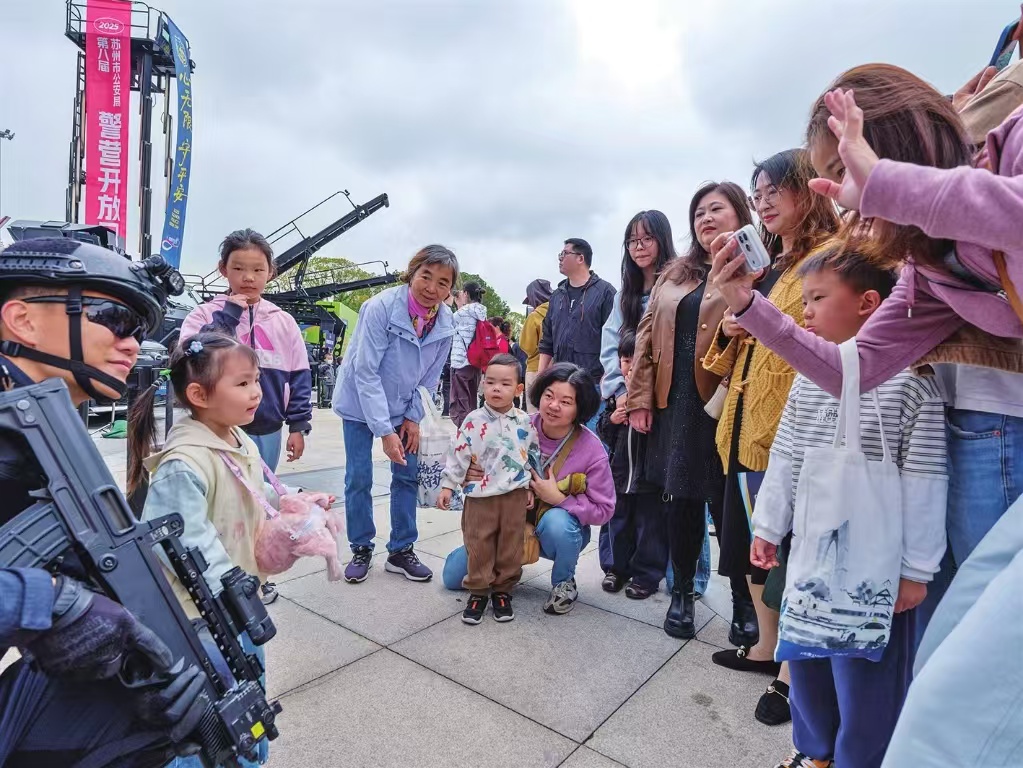 昨天,蘇州市公安局第八屆警營開放日的第二天,蘇州文化藝術中心廣場處處充滿警營氣息,警察成為少年兒童爭相合影的對象。