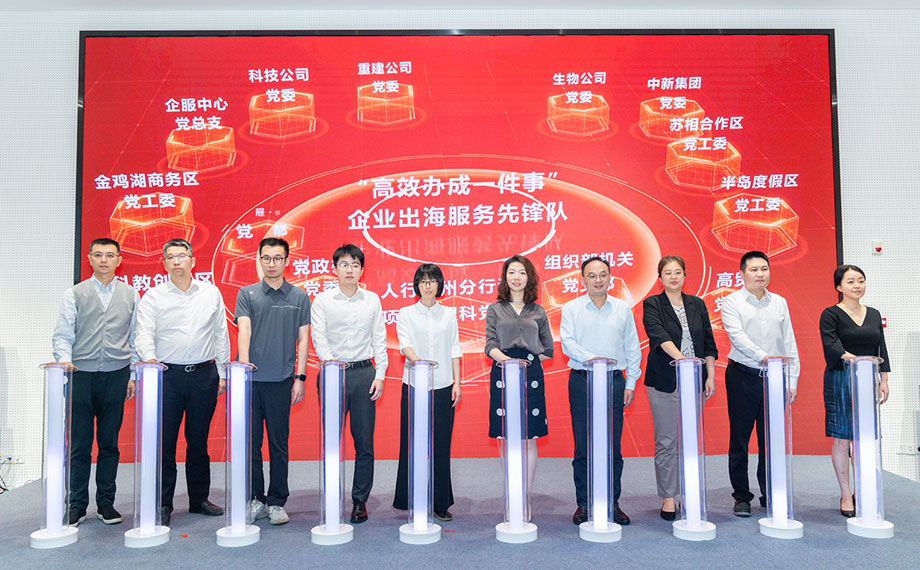 其中,“一支隊伍”匯聚20余個政府部門、功能板塊和國資載體力量,通過協(xié)調(diào)聯(lián)動、清單化內(nèi)容,高效服務企業(yè)出海;依托園區(qū)“一網(wǎng)通辦”建設線上服務專區(qū),覆蓋近100個服務事項,通過集成式、套餐式精準服務讓出海“一鍵即達”;“一個矩陣”集聚律所、財稅、金融、咨詢等專業(yè)機構(gòu)力量,形成全鏈條、多領域的全生命周期服務體系;“一批站點”融通園區(qū)海外商務合作中心和服務站點,配備出海首席服務官,為企業(yè)高端人才引進、企業(yè)注冊運營咨詢、共享辦公研發(fā)載體對接等提供咨詢輔導;“一系列賦能平臺”匯聚“金雞湖跨境談”“藍海沙盤”“揚帆添翼”等服務品牌,靶向解決企業(yè)實際需求;“一個場所”則以線下專區(qū)模式,實現(xiàn)業(yè)務審批、人才服務、供需對接等多元需求的“一站惠享”。