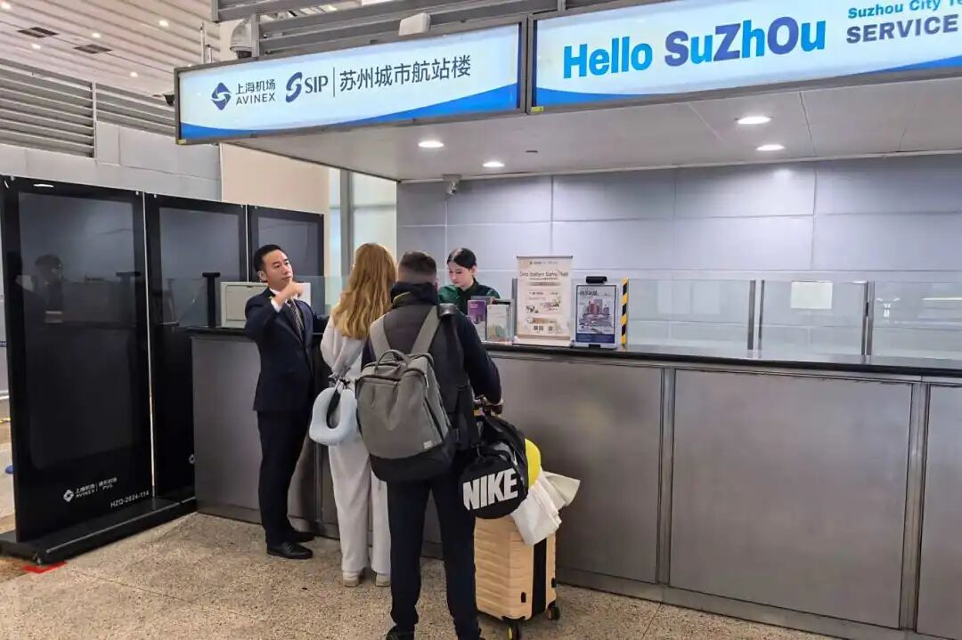 在入境免簽的政策背景下,今年入境外國游客預計超過3500萬人,將創下中國入境游歷史新高。為搶抓機遇,提升蘇州城市國際知名度,吸引更多國際旅客來蘇,“上海機場蘇州服務中心”今天在浦東國際機場T1和T2航站樓內正式試營業。在長三角一體化發展戰略和滬蘇深化一體化發展背景下,將探索打造上海口岸與內地城市在產業、文旅、商業等領域的合作樣板。