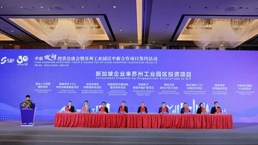 At the China-Singapore Investment Forum & Signing for SIP China-Singapore Cooperation Projects held on Nov 25, 26 projects were signed to promote two-way investment between China and Singapore in biomedicine, professional services, digital economy, green development and other fields. These projects are expected to help accelerate SIP’s development towards an open and innovative world-class high-tech park.