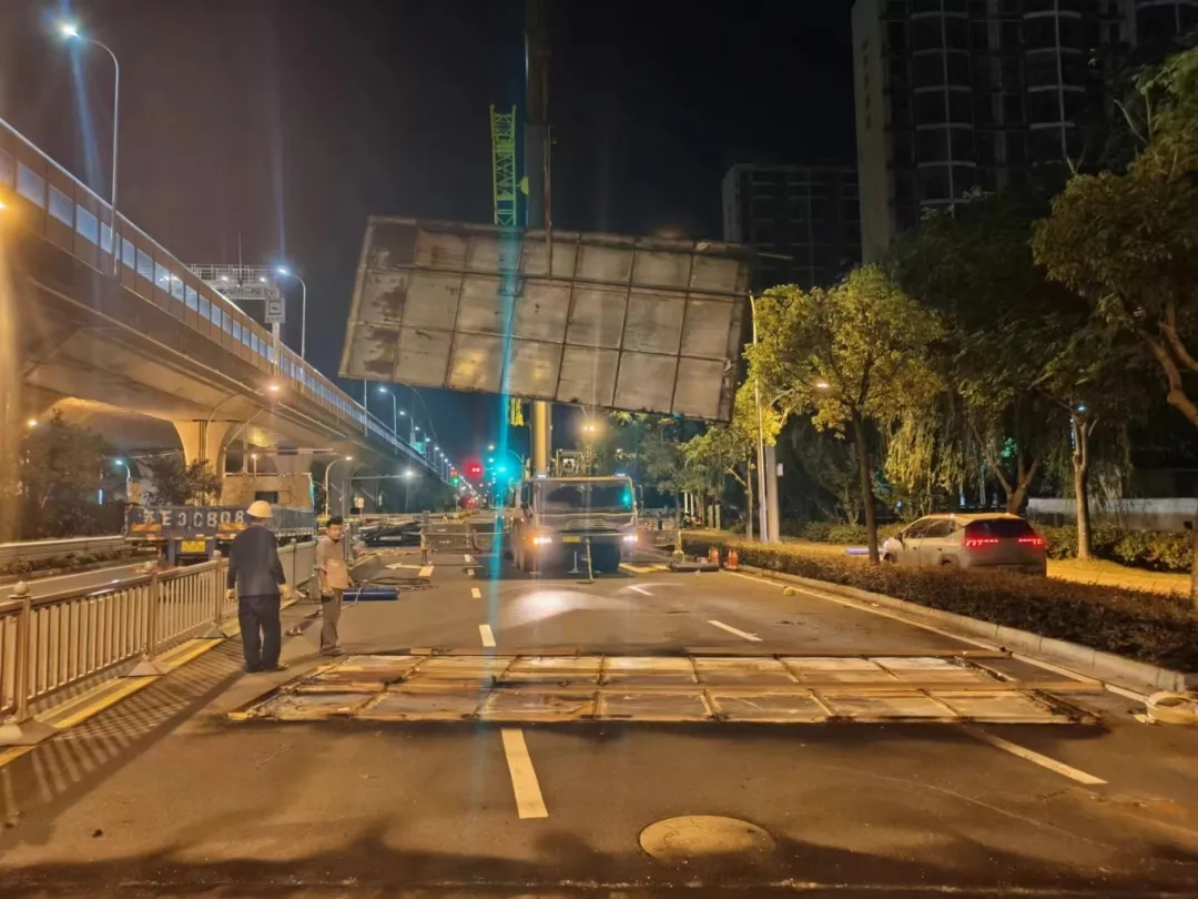 結合實際,拉網式排查統計轄區內大型高立柱廣告設施,詳細了解掌握高立柱廣告設施的使用年限、安全情況、所在位置等信息,做到底數清、情況明、信息準,依法依規拆除違規設置、無序設置、低質量設置且存在安全隱患的戶外廣告設施。今年以來,已累計拆除戶外廣告設施1846平方米,專項拆除位于星杭街夏家浜路、星杭街東振路、滬寧高速沿線等處3座超期設置的大型高立柱廣告。