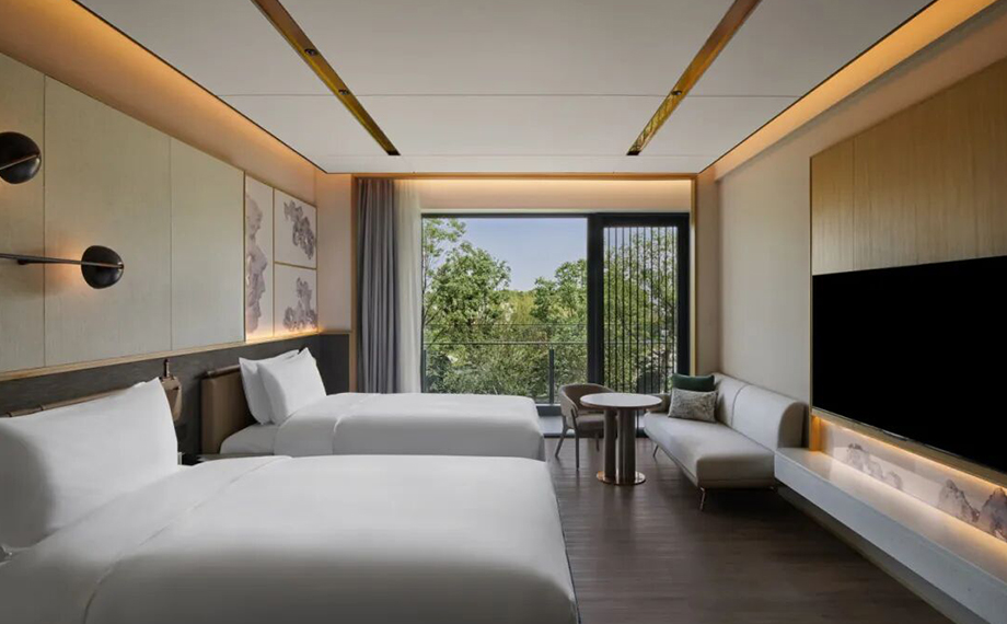 蘇州陽澄湖泰康萬豪酒店延續品牌現代設計美學,從清代文人沈復《浮生六記》中所描述的閑適雅趣生活汲取靈感,于湖山之間營造一處詩意棲居的現代度假勝地。室內設計以現代手法重構江南園林意境,打造移步換景空間體驗及“文人慢生活”的悠然意趣。